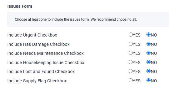 Select Yes or No under the Issue Form options
